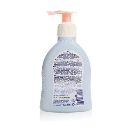 This product, enriched with natural milk protein, is perfect for nurturing your baby's delicate skin. Its moisturizing formula includes panthenol and chamomile, offering soothing relief and hydration for up to 24 hours. Designed for optimal care, it keeps your baby's skin soft, healthy, and protected. Ideal for daily use, it supports the skin's natural barrier, promoting overall skin health and comfort.