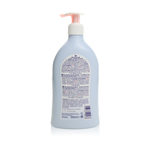 This product, enriched with natural milk protein, offers optimal care for your baby's delicate skin. Its moisturizing formula, infused with panthenol and chamomile, soothes and hydrates, keeping the skin soft and moisturized for up to 24 hours. Ideal for maintaining healthy, supple skin, it is perfect for daily use on your baby's sensitive skin.