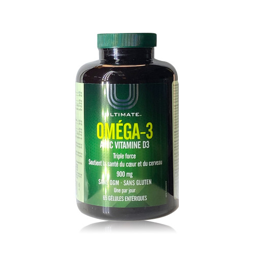 Experience the combined benefits of high-potency omega-3 fatty acids and vitamin D3 with Ultimate Omega-3 900mg with Vitamin D3 Softgels. Each softgel delivers a potent dose of EPA and DHA in a 2:1 ratio, along with vitamin D3, supporting heart, brain, bone, and immune health. Sourced from pharmaceutical-grade fish oil concentrates, this supplement is designed for optimal absorption and efficacy.