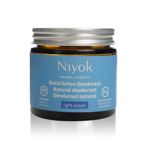 Feel naturally fresh all day with Niyok Deo Cream Light Ocean - Fragrance Free. Specially formulated for sensitive skin, this gentle, aluminium-free deodorant provides effective odour protection without synthetic fragrances or harsh additives. Enriched with coconut oil and plant-based ingredients, it keeps your underarms soft, smooth, and protected — in a sustainable, zero-plastic glass jar. Ideal for those looking for reliable, fragrance-free, skin-friendly care.