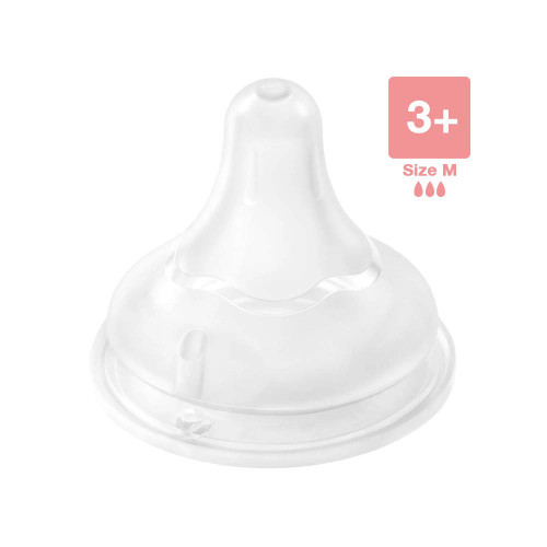 The Pigeon SoftTouch™ Wide Neck Nipples (Size M) are specially crafted for babies aged 3 months and up. These nipples feature a medium flow suited for babies who are developing stronger sucking abilities. Their Peristaltic PLUS design ensures a natural tongue movement and seamless latch-on, while the Air Ventilation System (AVS™) helps reduce colic by minimizing air intake. Each pack includes two BPA- and BPS-free silicone nipples compatible with all Pigeon Wide Neck bottles.